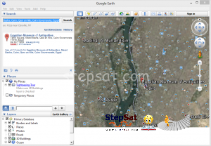 قم بكتابة في خانة (( search )) المكان الذي تود أن تبحث عنه.. وقم بالانتضار عدة ثواني وسيتحرك البرنامج إلى المكان المحدد ، وسوف تظهر يد ويمكنك بالضغط كليك شمال مرتين أن تقرب المنظر أكثر لترى المكان بشكل أوضح.