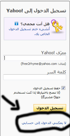 قم بالظغط على لا يمكنني الدخول إلى حسابي