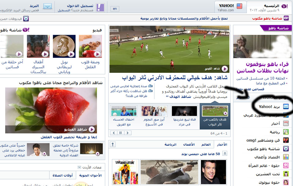 قم بالدخول على موقع ياهو ثم إظغط على بريد yahoo