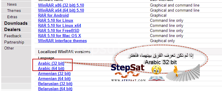 وفي الغالب سوف نختار Arabic 32Bit إلا إن كان المعالج الخاص بك ونظام التشغيل يدعمان نظام 64 بت ..